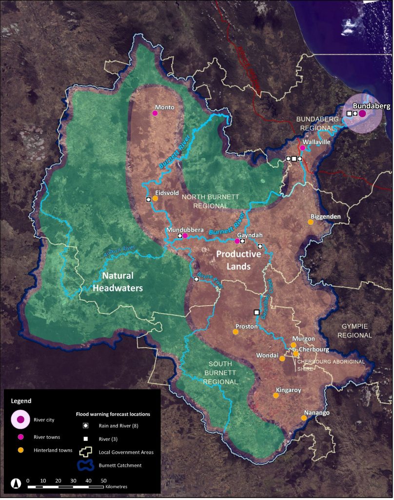 The rivers of Nogo, Auburn, Boyne and the Barker-Barambah Creek system all feed into the Burnett river along the way. Feeding the river with rain from the North Burnett, South Burnett, and Bundaberg regions.